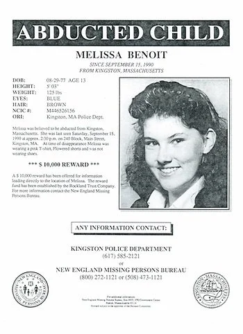 On Saturday, September 15th, 1990, 13-year-old Melissa Benoit vanished from her hometown of Kingston, Massachusetts. She had stopped by her father’s grave after leaving a friends house and was abducted on her way home.